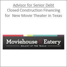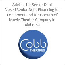 Growing movie theatre company that provides an in-theatre dining experience with over 300 screens throughout the USBackground: Longtime client that initially approached EFA seeking junior capital to grow its business.